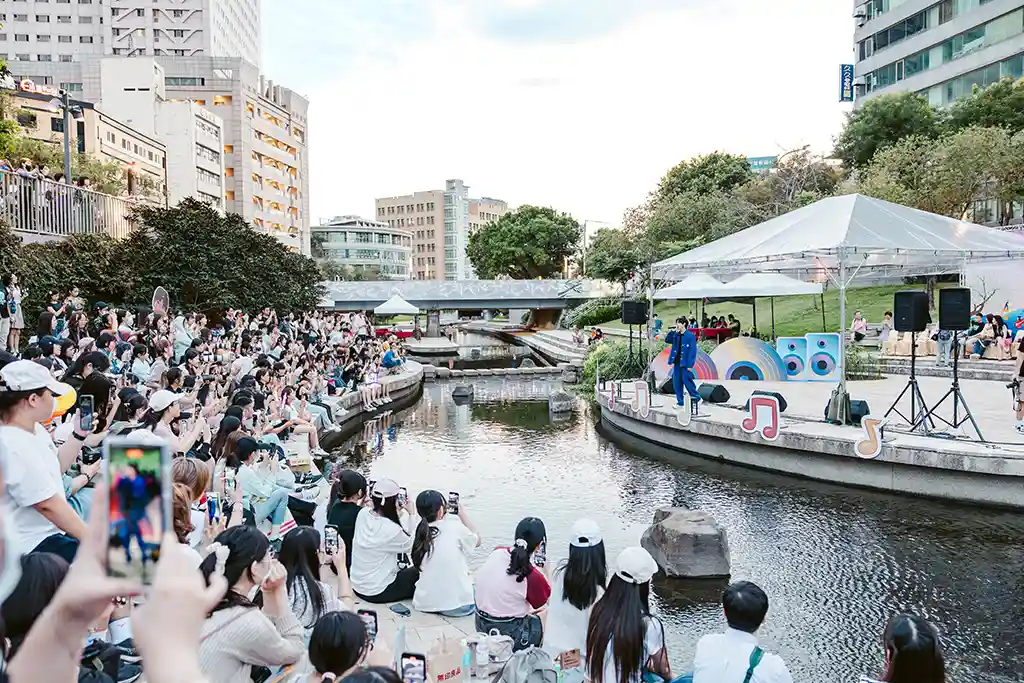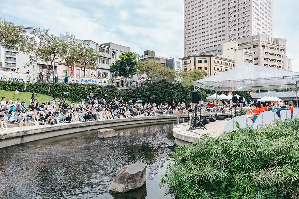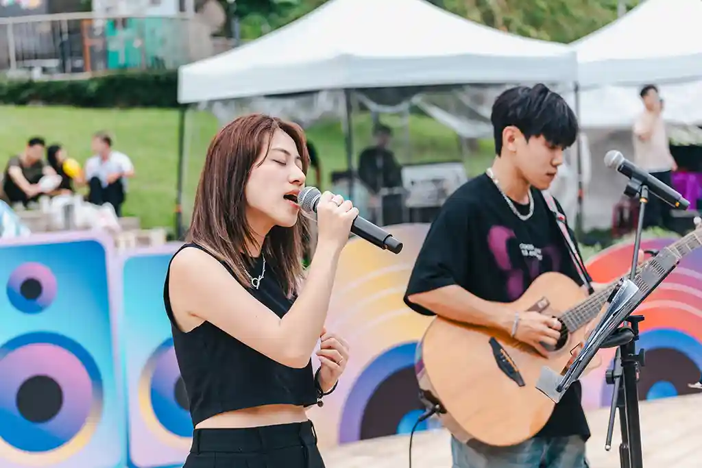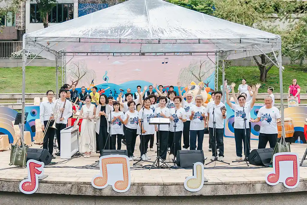 台中逍遙音樂町,鄭可強與黃宏軒壓軸,百位觀眾同歡,氣氛熱烈。